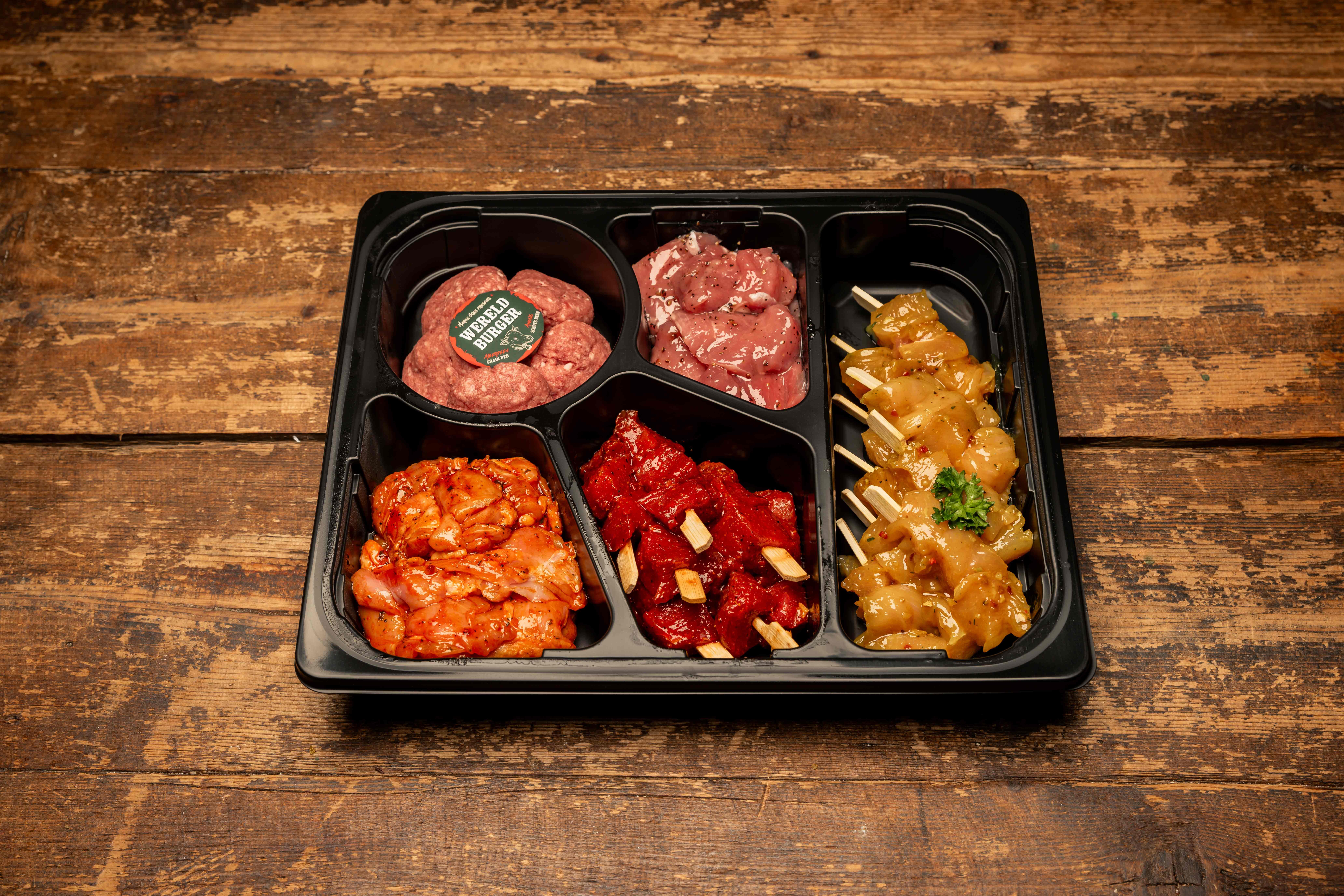 • Varkenshaasmedaillons • Wereldburgertjes • Kip-kalkoenhaasspiesjes • Kipdijlapjes • Kogelbiefstukspiesjes |