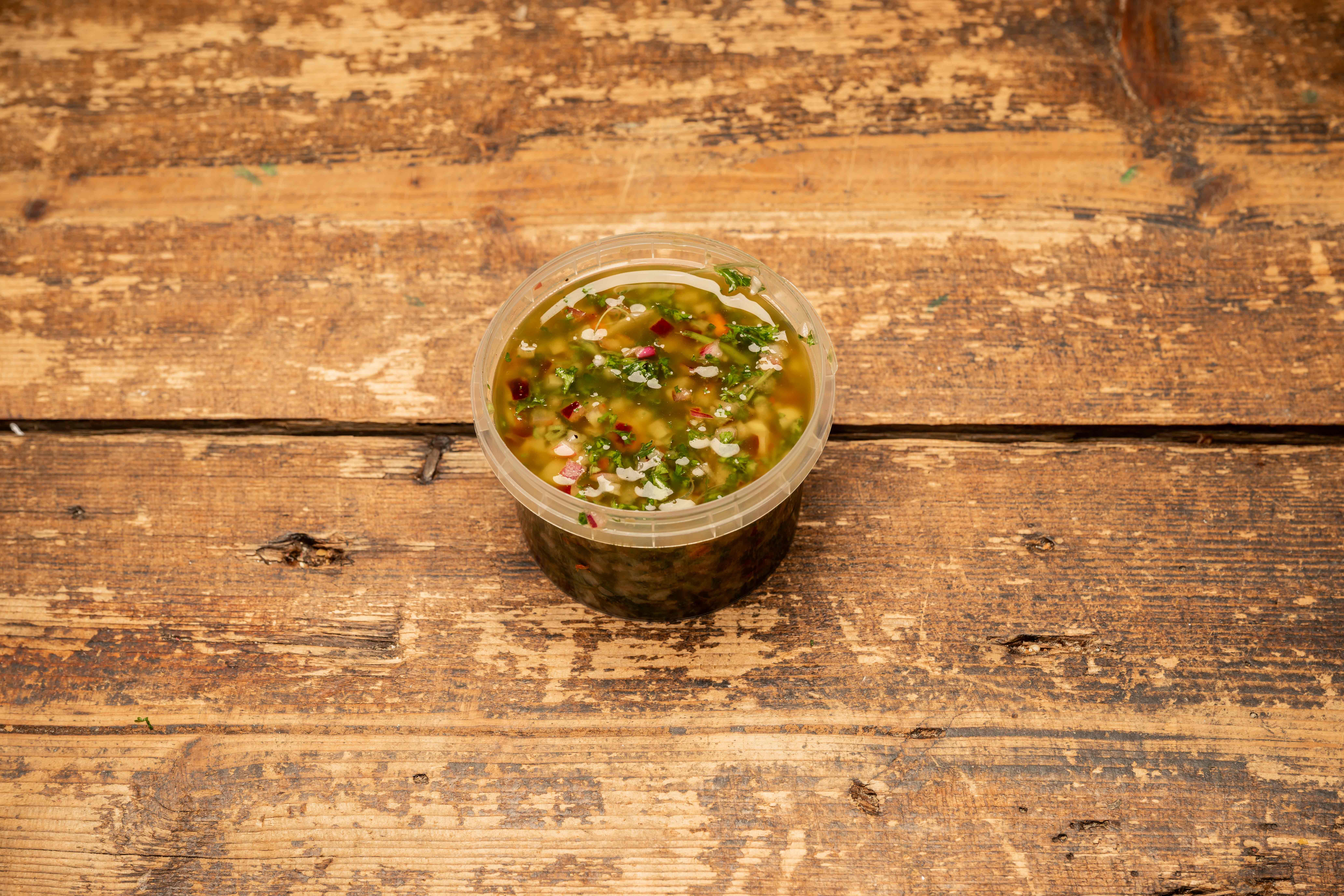 Verse kruidensalsa met o.a. peterselie, rode ui, knoflook en rode peper.